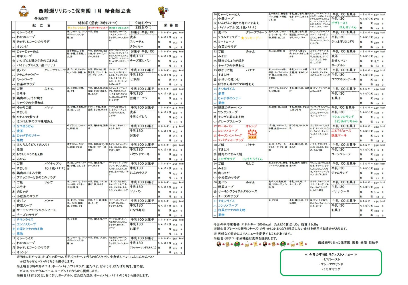 給食献立表【2026年1月号】を更新しました。 pdfはこちらからご覧ください。