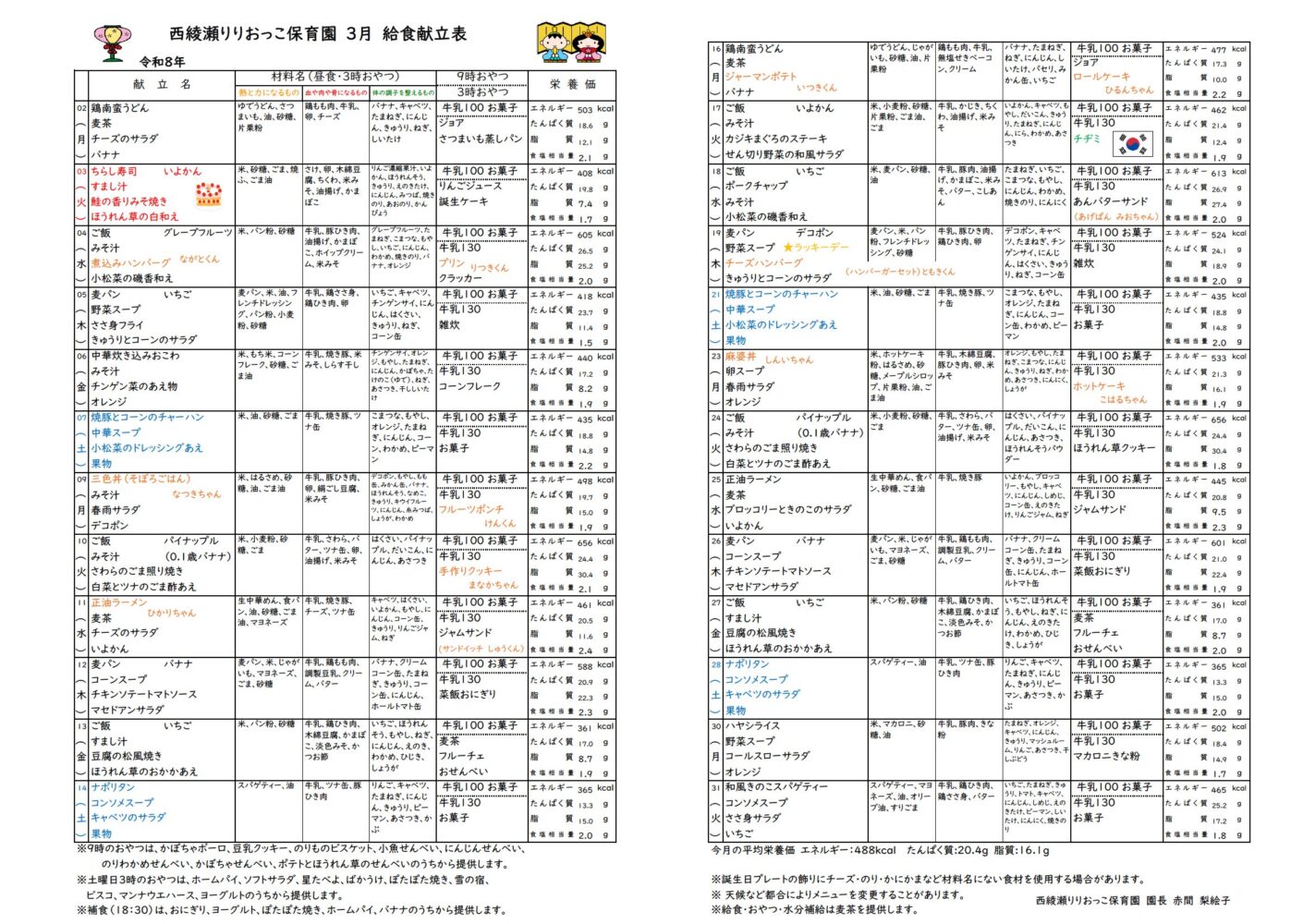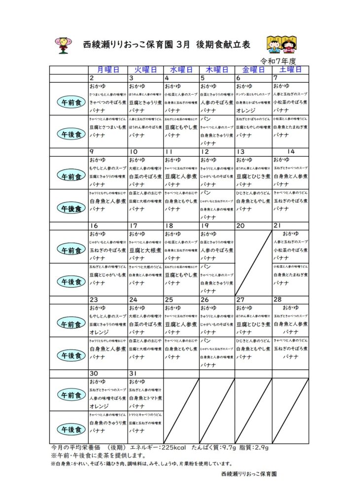 給食献立表【2026年3月号】を更新しました。 pdfはこちらからご覧ください。
